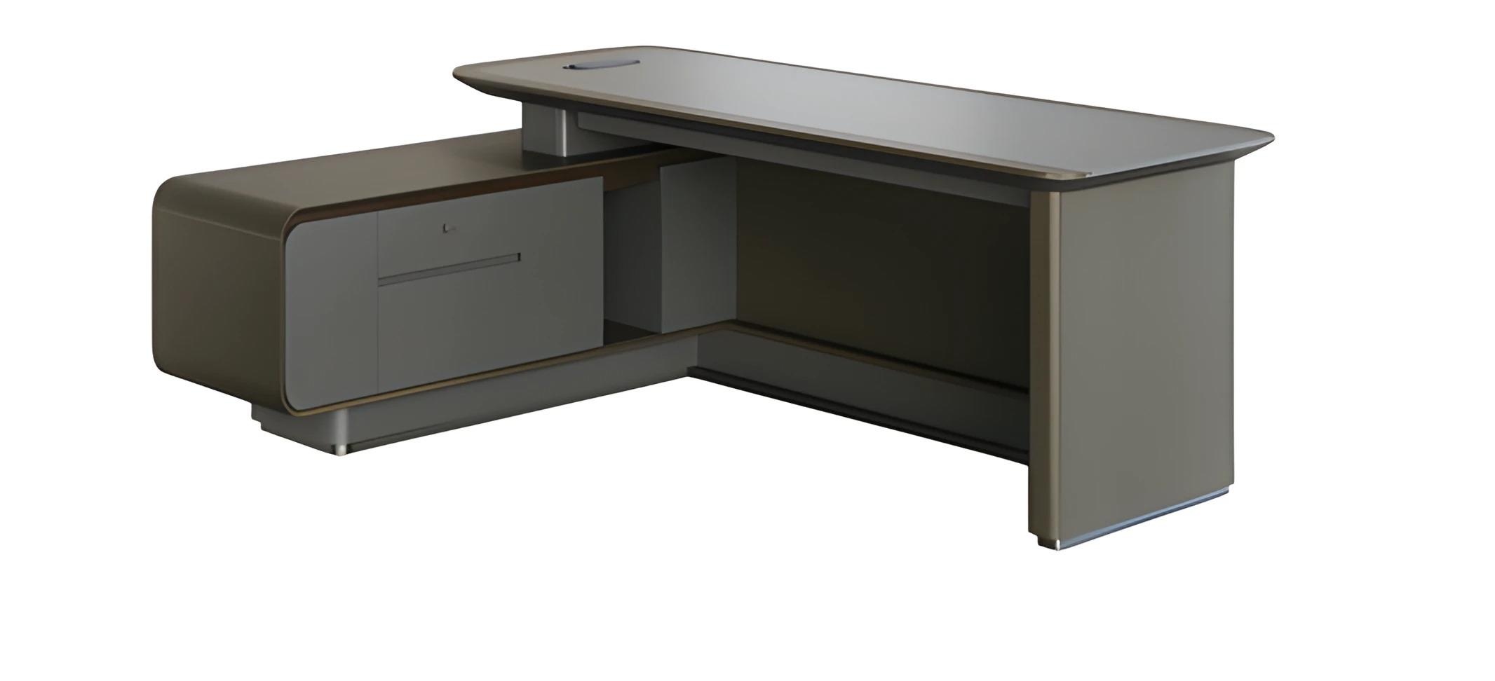 Moderni harmaa kulmapöytä säilytystilalla
