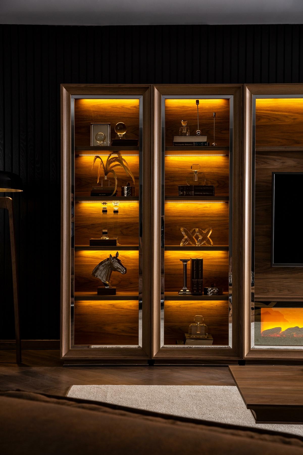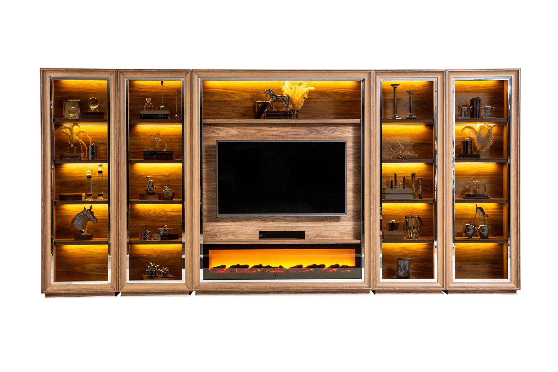Luksus olohuoneen seinä takalla ja kahvipöydällä on huipputason sisustuselementti, joka yhdistää estetiikan ja toiminnallisuuden. Syvän ruskea sävy luo lämpöä ja kutsuvuutta, täydentäen modernin kodin tunnelmaa. Huolellisesti valittu materiaali takaa kestävyuden ja ajattoman kauneuden, joka kestää aikaa ja muotisuuntauksia. Tämä kokonaisuus ei vain toimi olohuoneen keskipisteenä, vaan se myös heijastaa asukkaansa ainutlaatuista elämäntyyliä. Yli kaksikymmentä vuotta luksuskalusteita suunnitellut brändimme tarjoaa tämän upean kokonaisuuden, joka vie kodin sisustuksen uudelle tasolle. Valitse laatu ja eleganssi, valitse luksus.