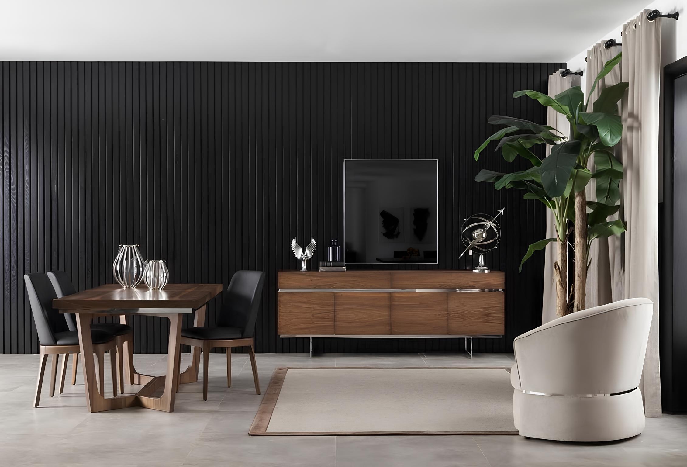 Ruokapöydän tuolien sarja yhdistää ajattoman muotoilun ja ylellisen mukavuuden. Ruskeasta polyesteristä valmistetut tuolit tarjoavat sekä esteettistä silmänruokaa että erinomaisen istumamukavuuden, tehden jokaisesta ruokailuhetkestä unohtumattoman. Tämä huonekaluryhmä on suunniteltu täydentämään eksklusiivista kodin ilmettä, luoden harmonisen ympäristön, jossa jokainen yksityiskohta huokuu laatua. Kestävät puuvarusteet lisäävät rakenteellista vahvuutta ja tyylikkyyttä, mikä tekee tästä sarjasta erinomaisen valinnan vaativalle sisustajalle. Valitse tämä ruokapöydän tuolien sarja ja elä ylellistä, tyylikästä elämää, jossa mukavuus ja design kohtaavat.