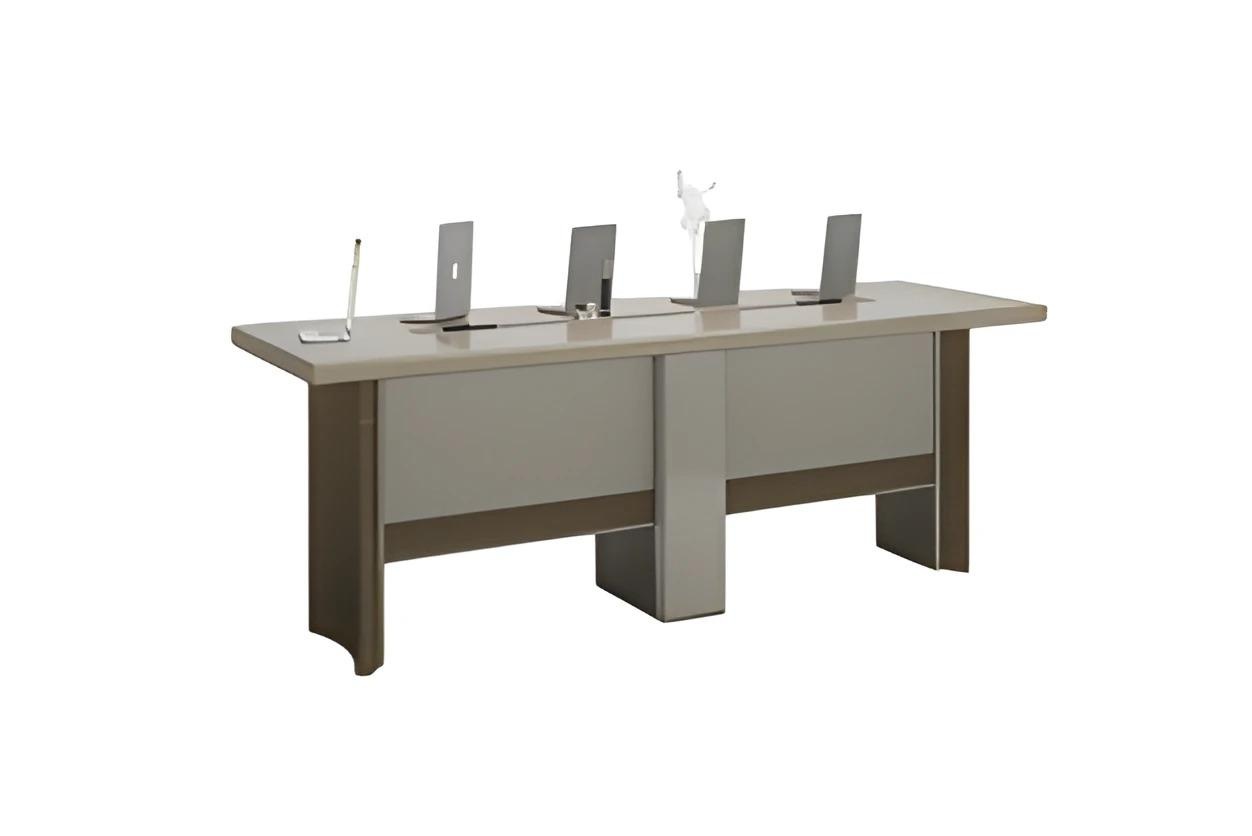 Moderni vaaleanharmaa kokouspöytä on huipputason designkappale, joka yhdistää tyylin ja käytännöllisyyden. Sen elegantti vaaleanharmaa sävy luo rauhallisen ilmapiirin, täydellisen keskeiseksi elementiksi moderniin työtilaan tai kodin oleskelutilaan. Valmistettu laadukkaista materiaaleista, tämä pöytä on suunniteltu kestämään aikaa ja päivittäistä käyttöä, samalla kun se säilyttää ensiluokkaisen ilmeensä. Sen minimalistinen muotoilu ja huolellisesti harkitut yksityiskohdat heijastavat korkeaa esteettisyyttä, tarjoten täydellisen taustan tärkeille keskusteluille ja luovalle ajattelulle. Tämä kokouspöytä on enemmän kuin pelkkä huonekalu; se on investointi, joka nostaa tilasi arvokkuutta ja korostaa eksklusiivista elämäntyyliäsi.