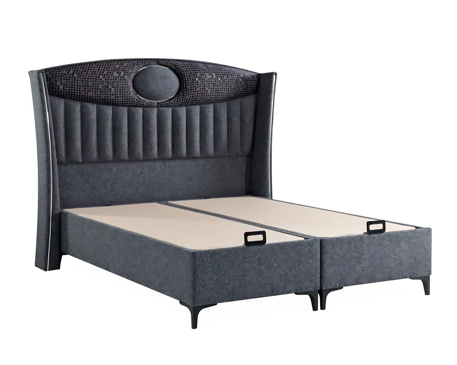 Tyylikäs harmaa sänky tekstiili- ja puupatjalla | xlhuonekalut.fi