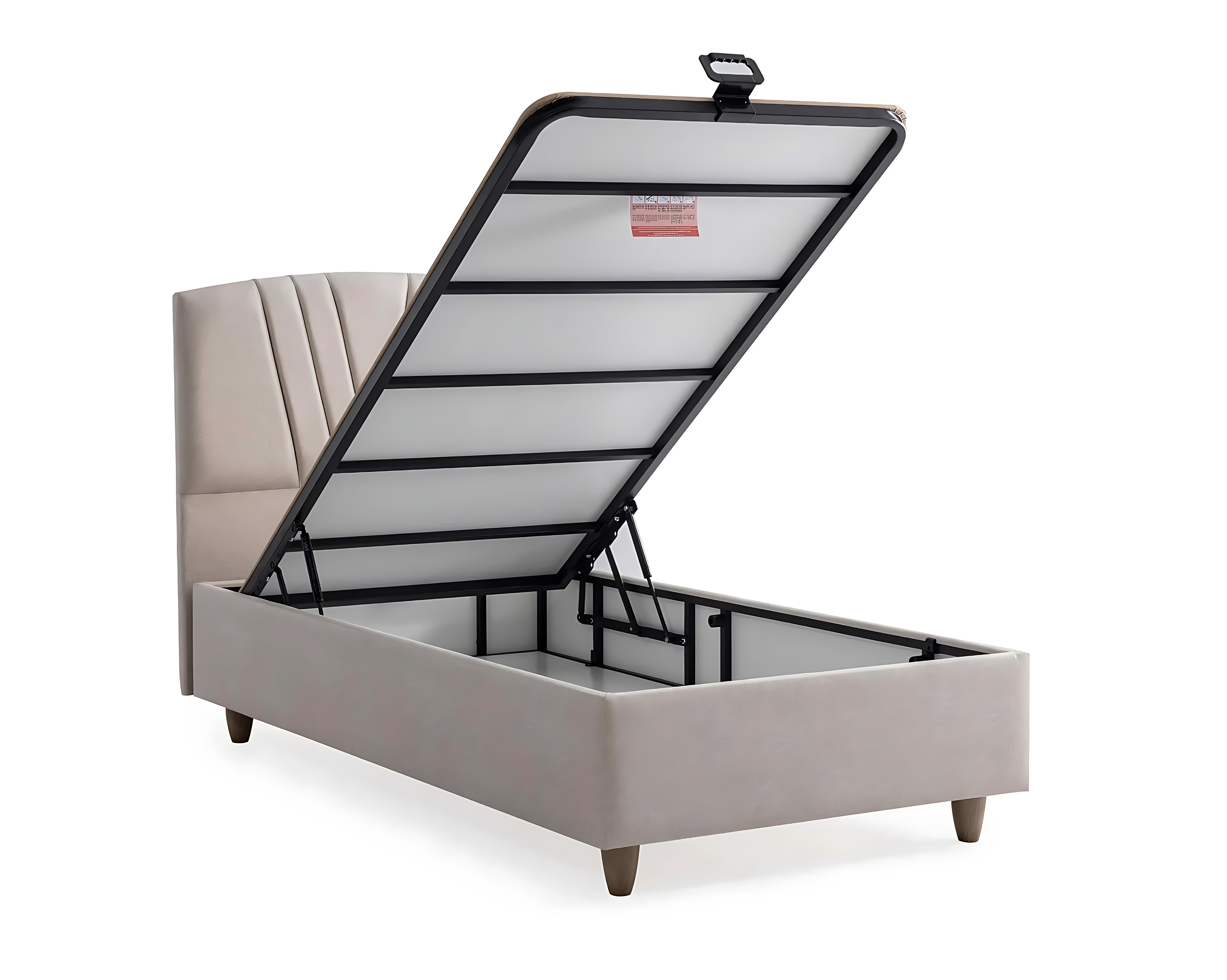 Tyylikäs sänky tekstiilipatjalla beige | xlhuonekalut.fi