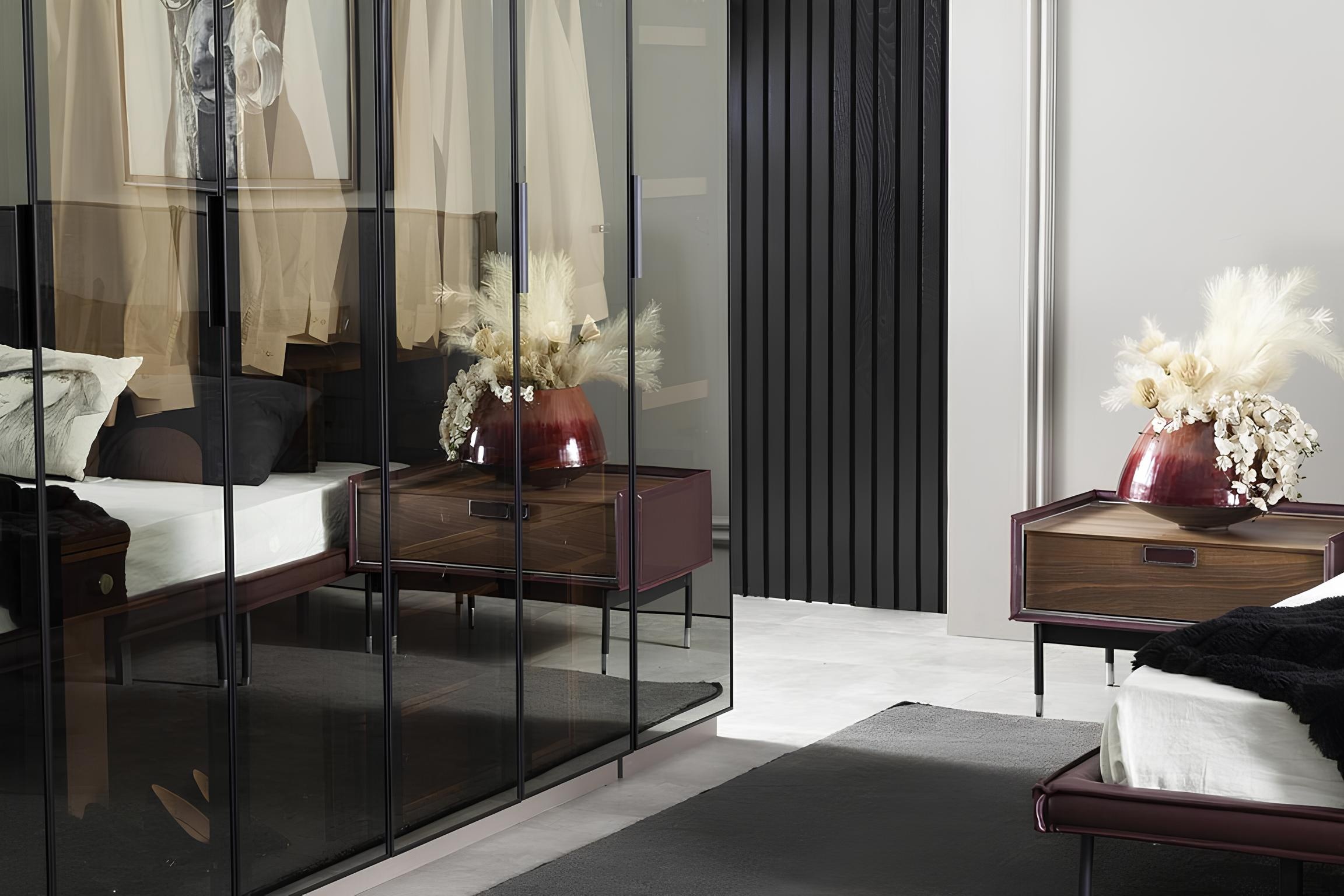 Täydellinen lasikaappi setti makuuhuoneeseen yhdistää elegantisti muotoilun ja käytännöllisyyden. Tämä neljän osan kokonaisuus, joka koostuu ylellisestä sängystä ja tyylikkäistä yöpöydistä, luo rauhoittavan ja samalla modernin ilmapiirin. Sen syvän ruskea sävy, yhdistettynä huolella valittuihin materiaaleihin, tuo lämpöä ja arvokkuutta tilaan. 20 vuoden kokemuksella valmistettu setti edustaa korkeinta laatua ja ainutlaatuista muotoilua, joka on suunniteltu vaativille asiakkaille. Täydellinen lasikaappi setti ei ainoastaan täytä makuuhuoneen tarpeita, vaan se on myös ilmentymä ainutlaatuisesta elämäntyylistä. Valitse tämä kokonaisuus, ja nauti joka päivä ylellisen asumisen tuomasta rauhasta ja kauneudesta.