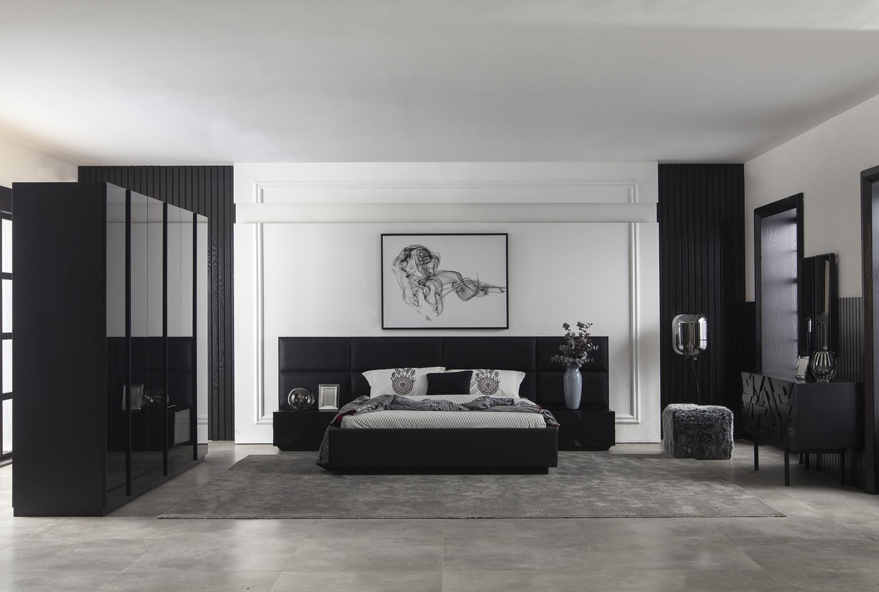 4-osainen musta makuuhuoneen kalustesarja, ylellinen setti uudella säilytystilalla | xlhuonekalut.fi