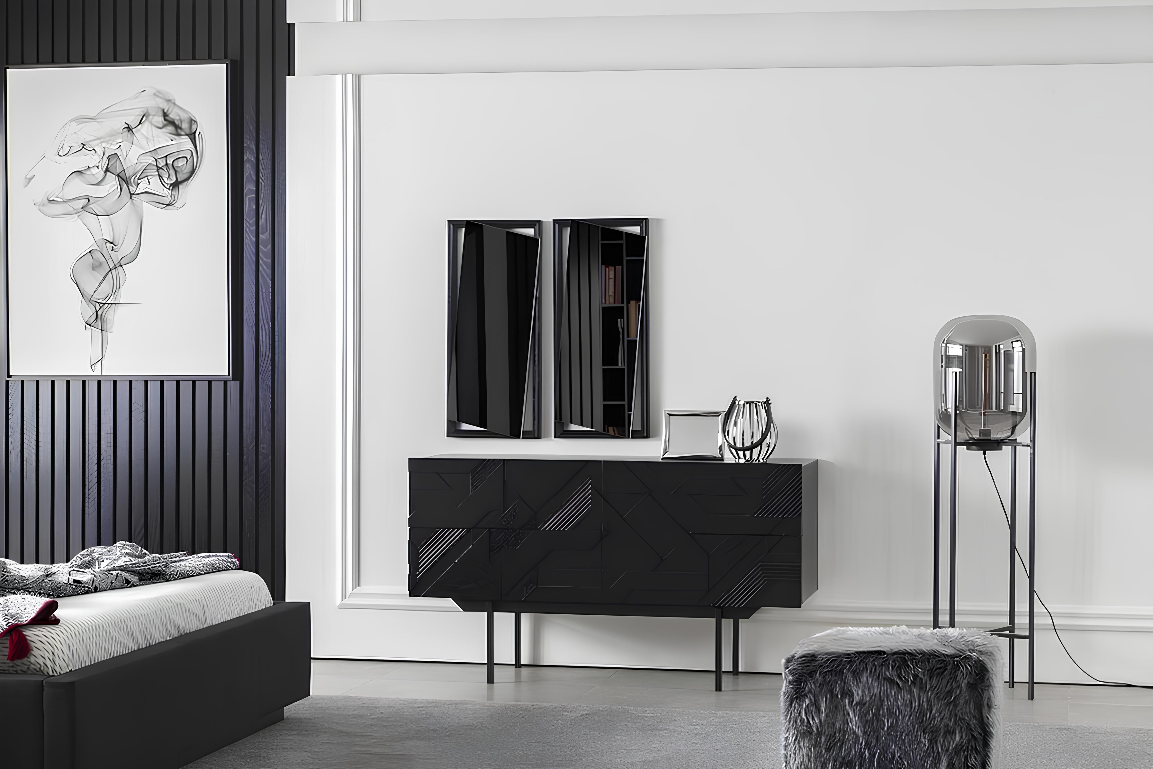 Mustat luksusmakuuhuonekalusteet, joissa on kaappi, lipasto ja yöpöydät 5 osaa. | xlhuonekalut.fi