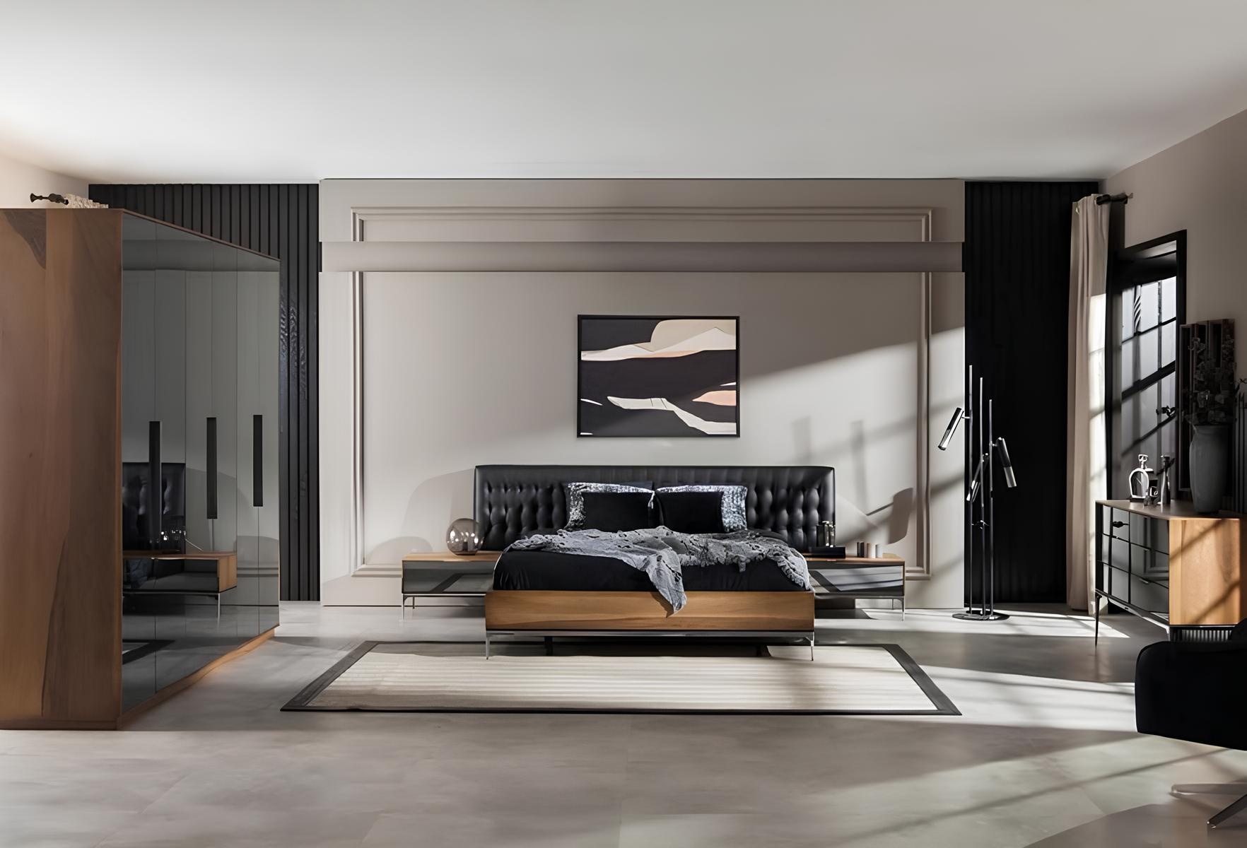 Täydellinen makuuhuoneen kalustepaketti yhdistää elegantin muotoilun ja käytännöllisyyden. Mustasta, korkealaatuisesta materiaalista valmistettu sänky tarjoaa rauhoittavan levon, kun taas tyylikkäät yöpöydät täydentävät kokonaisuutta, tarjoten sekä säilytystilaa että esteettistä viehätystä. Kaunis neliosainen kaappi, jossa on huolellisesti suunnitellut yksityiskohdat, luo tilaan ylellisyyden tuntua ja mahdollistaa upean järjestyksen. Tämä kalustepaketti ei ainoastaan korosta makuuhuoneesi ilmettä, vaan se myös heijastaa valintojasi ja elämäntapaasi. Investointi tähän kokonaisuuteen on investointi ajattomaan eleganssiin ja korkeaan laatuun.