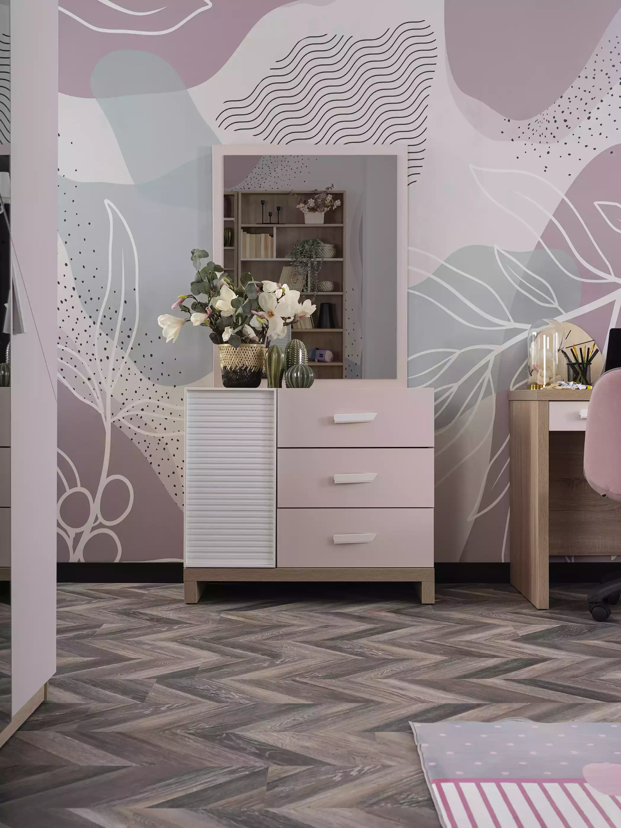 Peili komero lastenhuoneeseen vaaleanpunainen 2 osaa | xlhuonekalut.fi