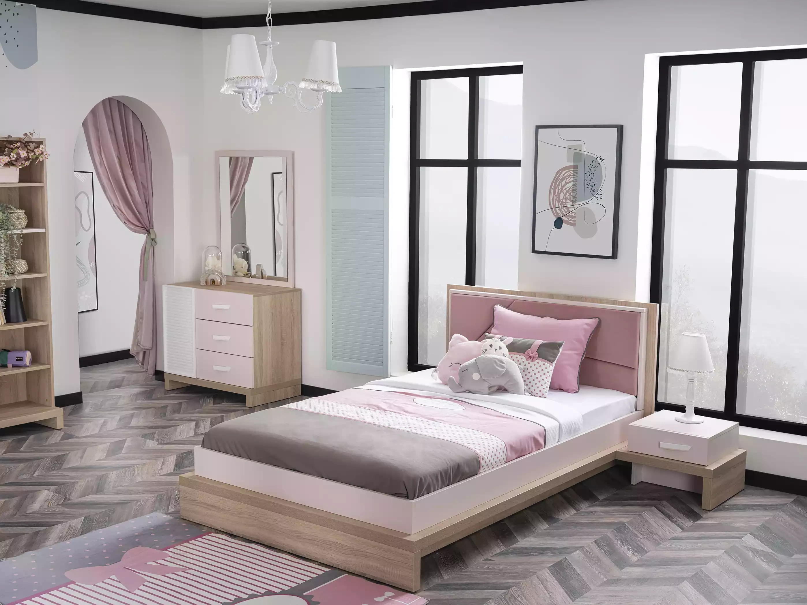 9-osainen vaaleanpunainen puuleikkisänkysetti | xlhuonekalut.fi