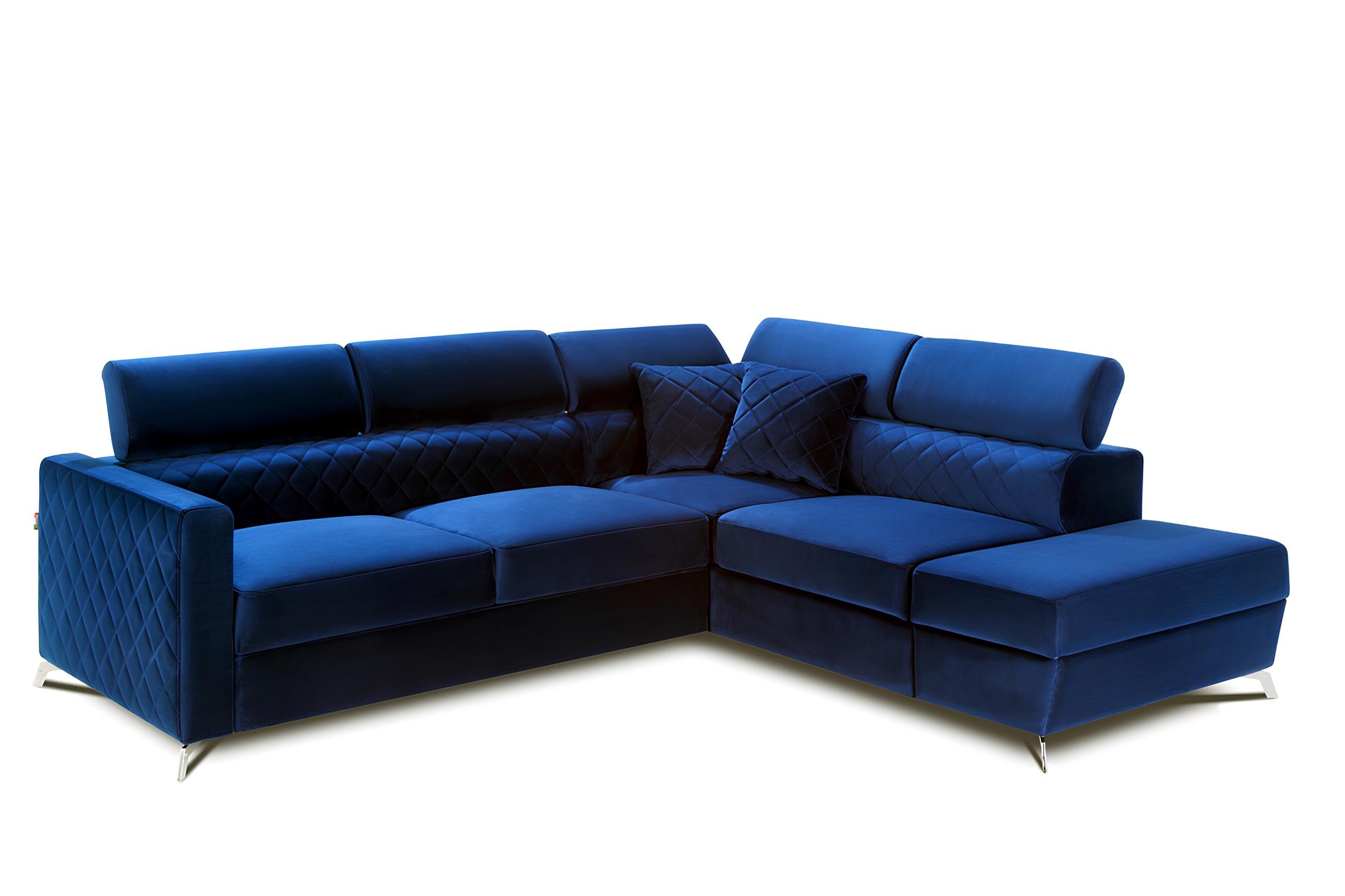 L-muotoinen sohva vuodefunktion kanssa, verhoiltu, sininen | xlhuonekalut.fi