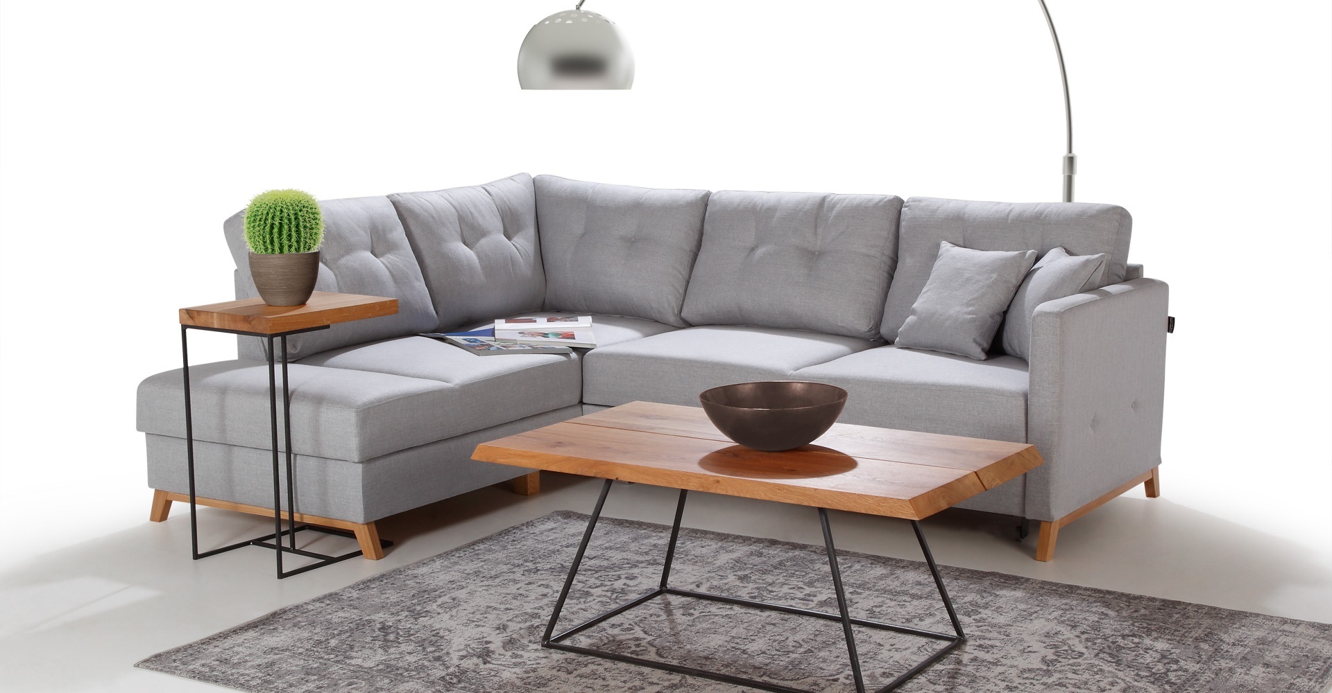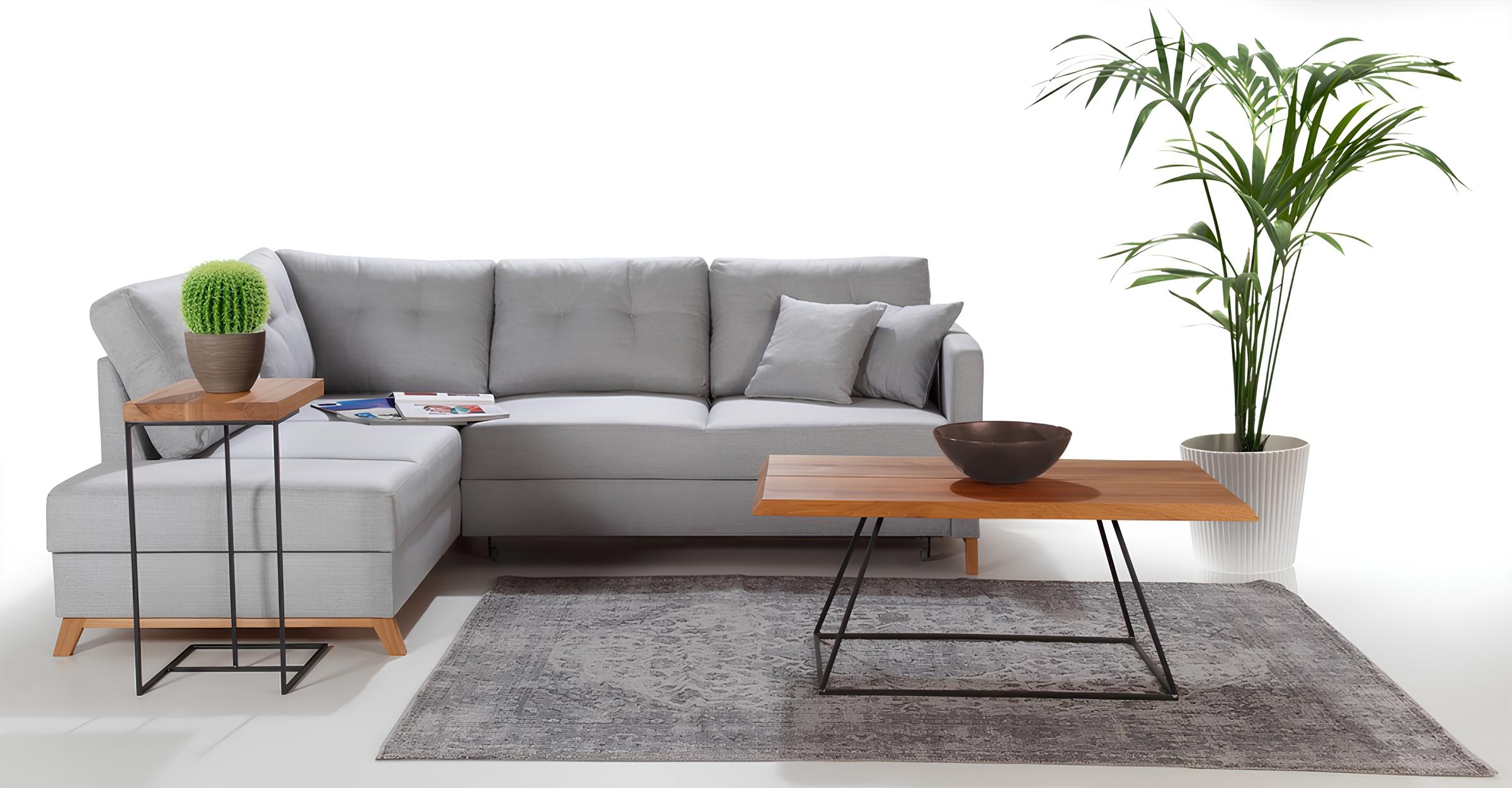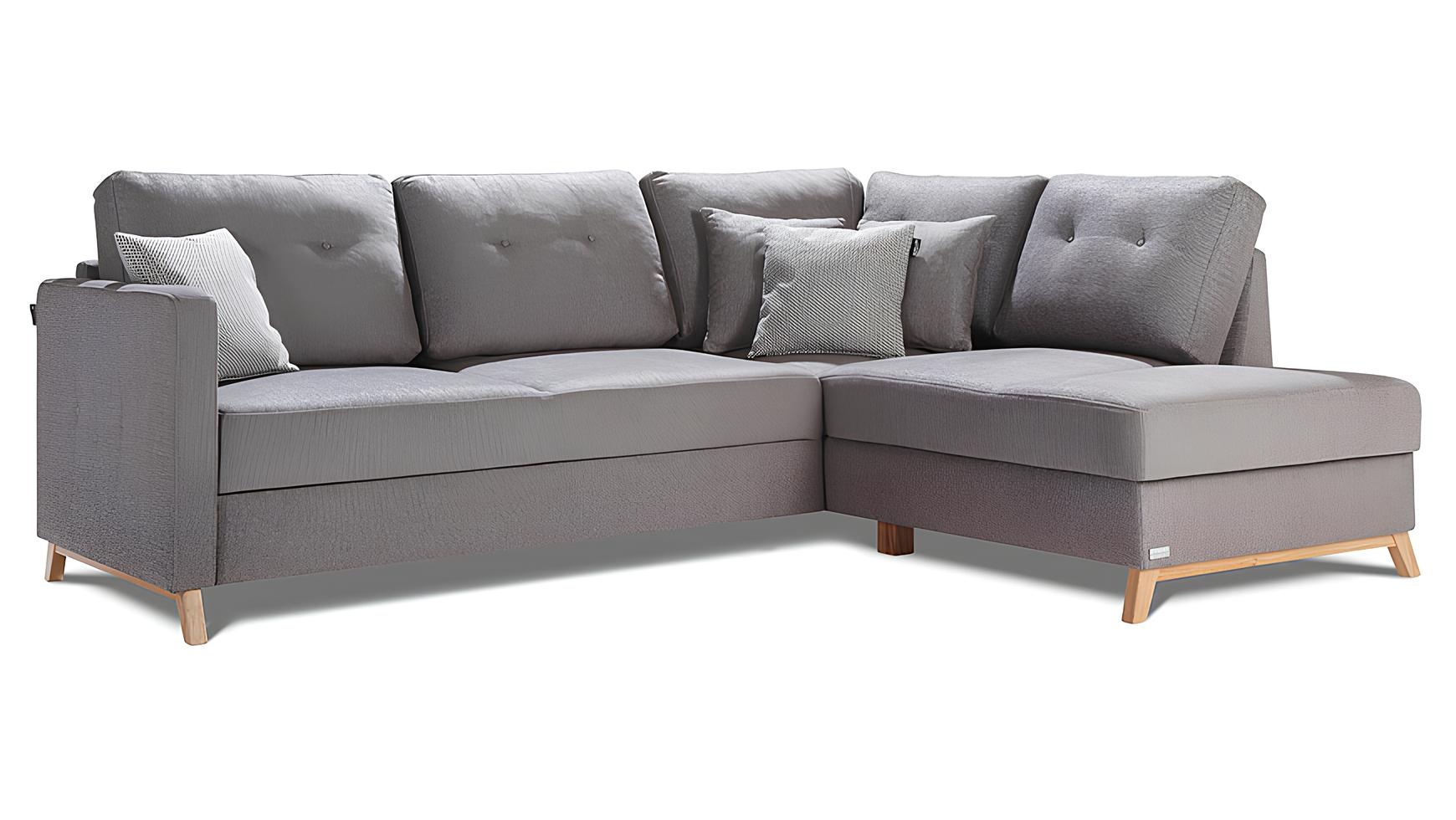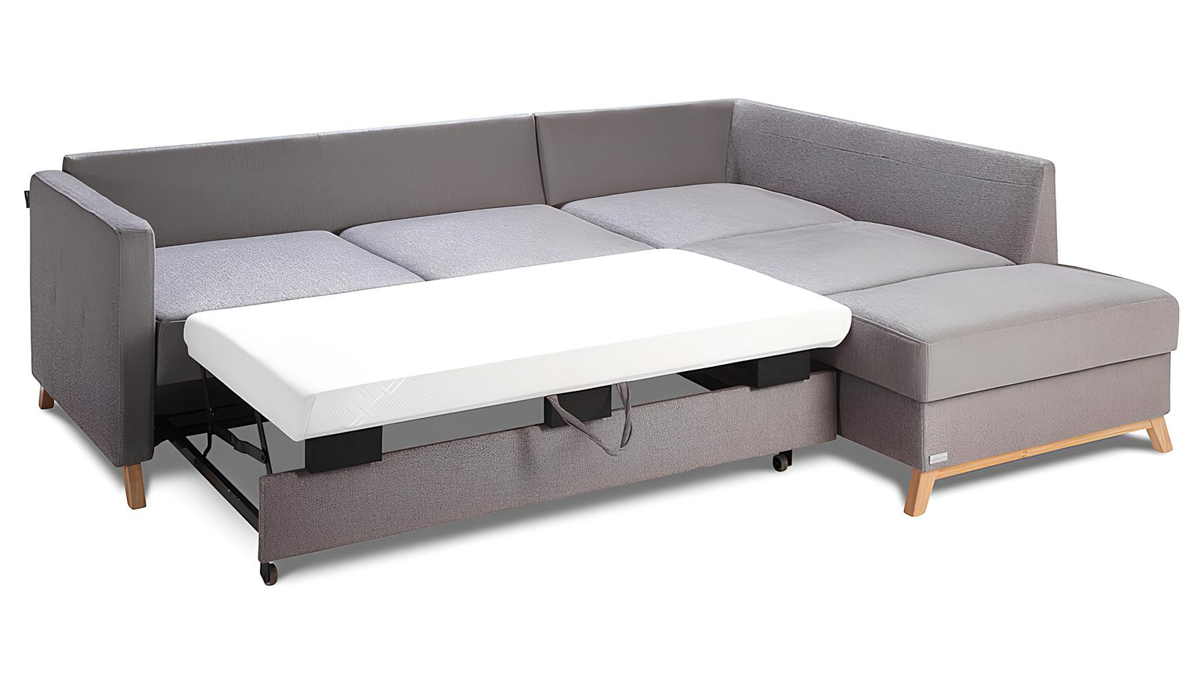 L-muotoisen kangasnurkkasohva, jossa on vuode-toiminto, uusi pehmustettu nurkkasohva, jossa on säilytystilaa vuoteelle | xlhuonekalut.fi