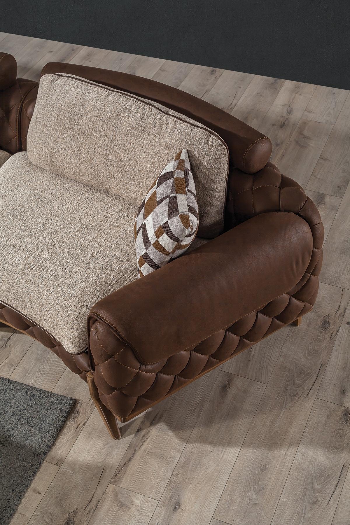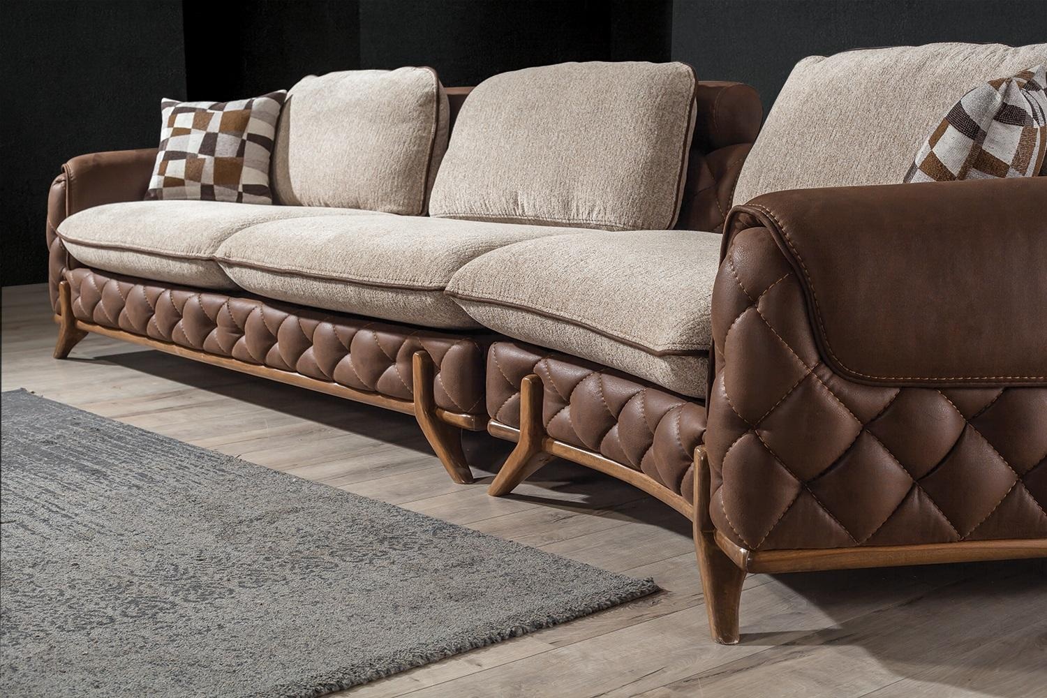 Tyylikäs ja ylellinen sohva neljälle hengelle yhdistää huipputason muotoilun ja ensiluokkaiset materiaalit. Sen ruskea tekstiili ja keinonafta luovat hienostuneen ilmeen, joka sulautuu täydellisesti moderniin kotiin. Tämä sohva ei ainoastaan tarjoa mukavuutta, vaan myös ilmentää elämänlaatua ja tyyliä, joka on saavutettu yli kahden vuosikymmenen ajan tarjoamalla luksuskalusteita. Sen elegantti muotoilu ja huolellisesti valitut yksityiskohdat tekevät siitä erinomaisen valinnan vaativalle sisustajalle, joka arvostaa eksklusiivista tunnelmaa. Valitse tämä sohva, ja vie kodin estetiikka uudelle tasolle.